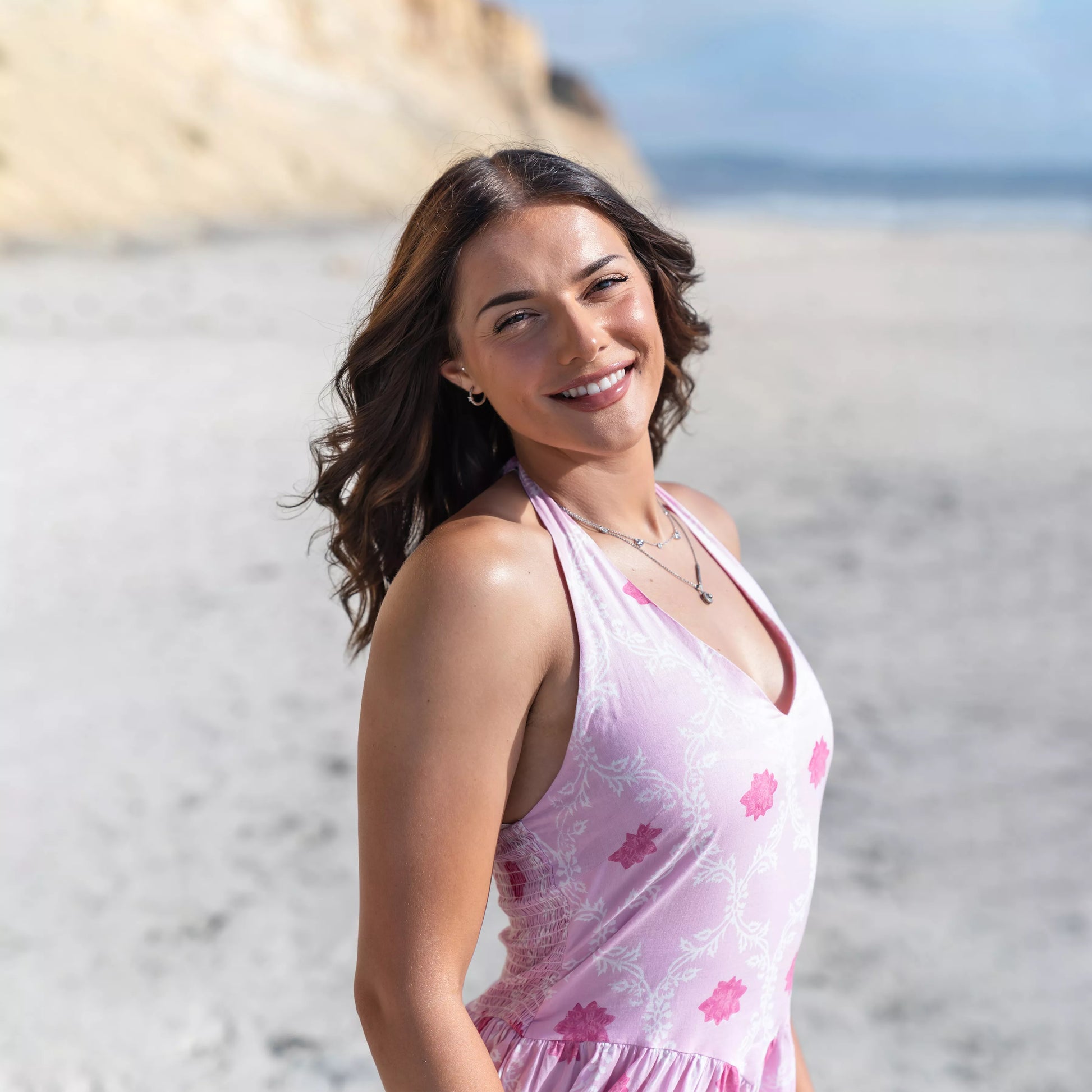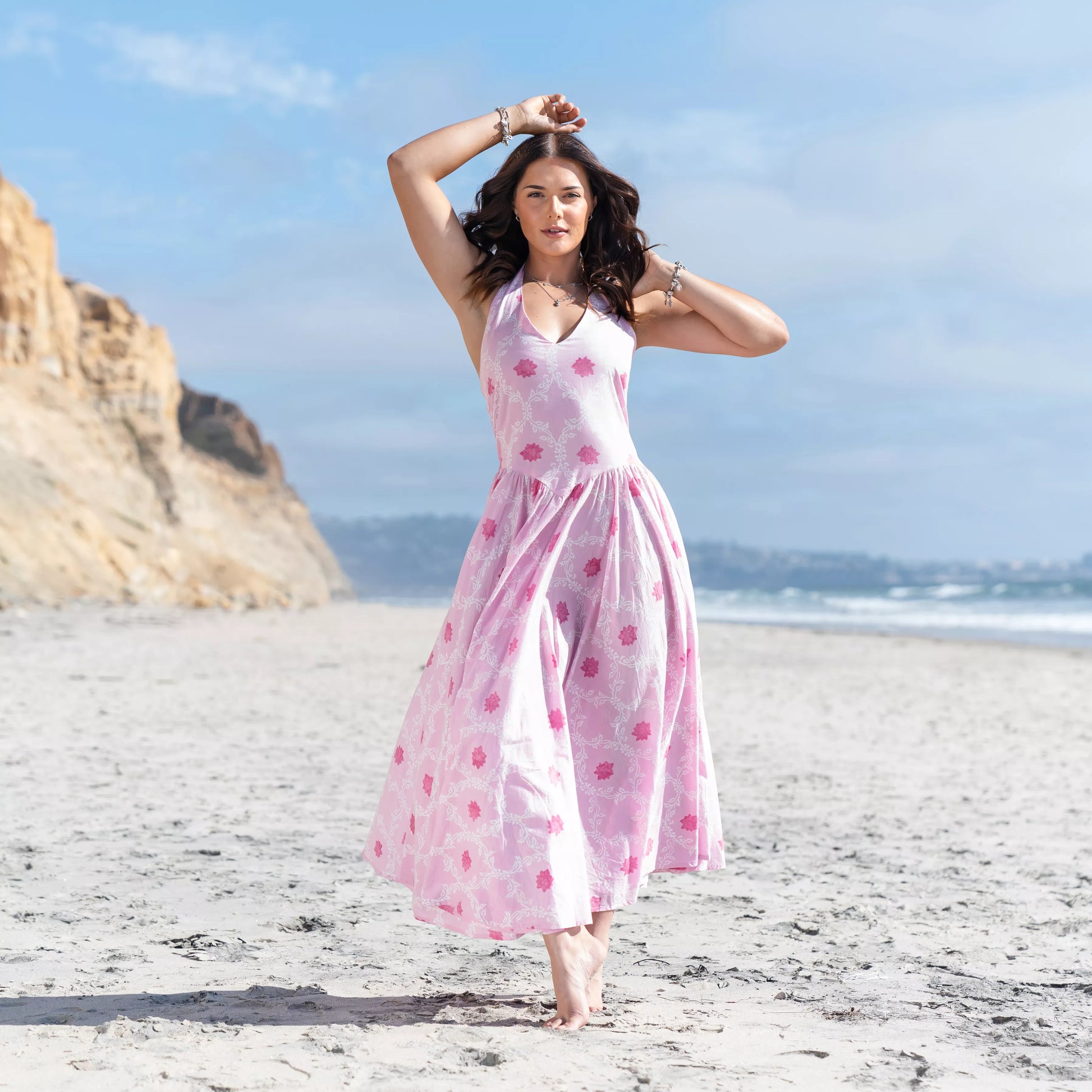 The Padmae dress is the essence of timeless elegance and artisanal mastery. Crafted from 100% organic, sustainably sourced cotton, this sleeveless midi-length dress features a refined halter neckline and a fluid silhouette that moves with effortless grace.