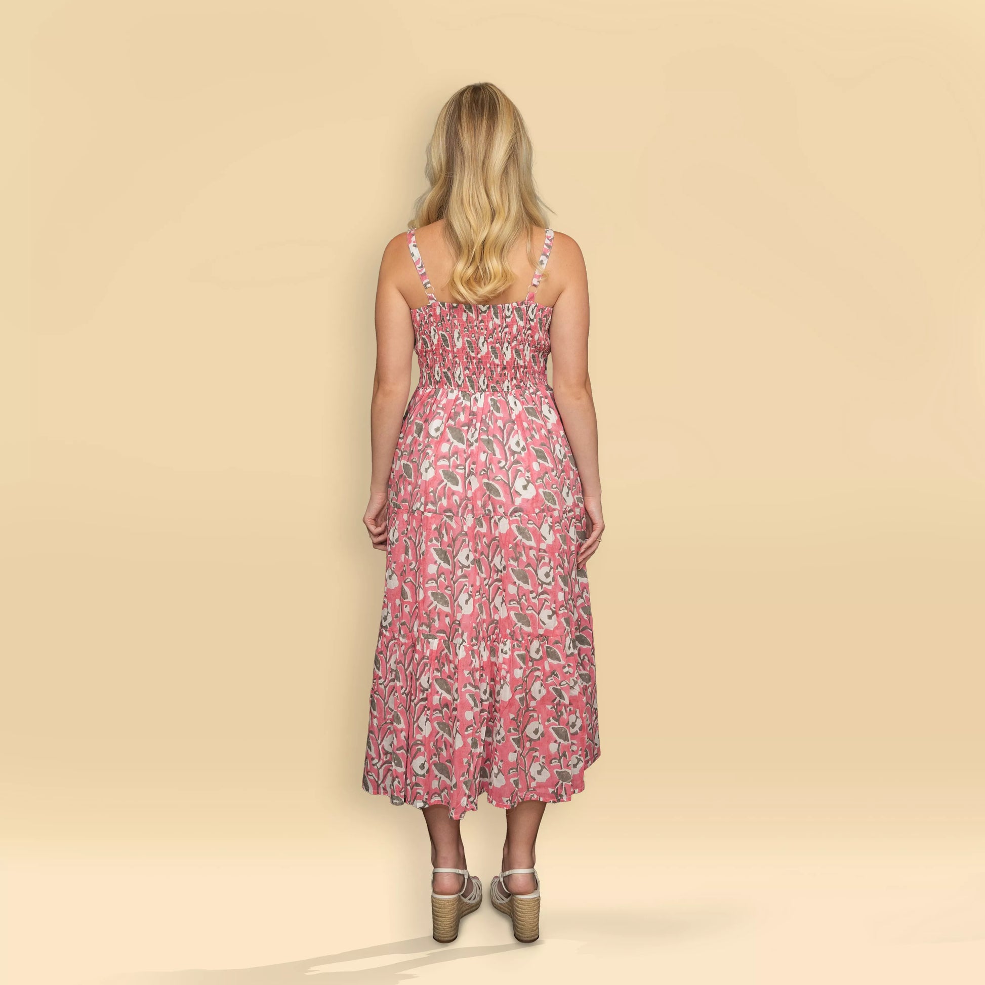 Effortlessly elegant, The Elira transitions with ease from daytime simplicity to evening charm. With its flattering silhouette, smocked back, and soft botanical prints, it’s the kind of dress that feels as good as it looks—romantic, relaxed, and ready for wherever the day (or night) takes you.